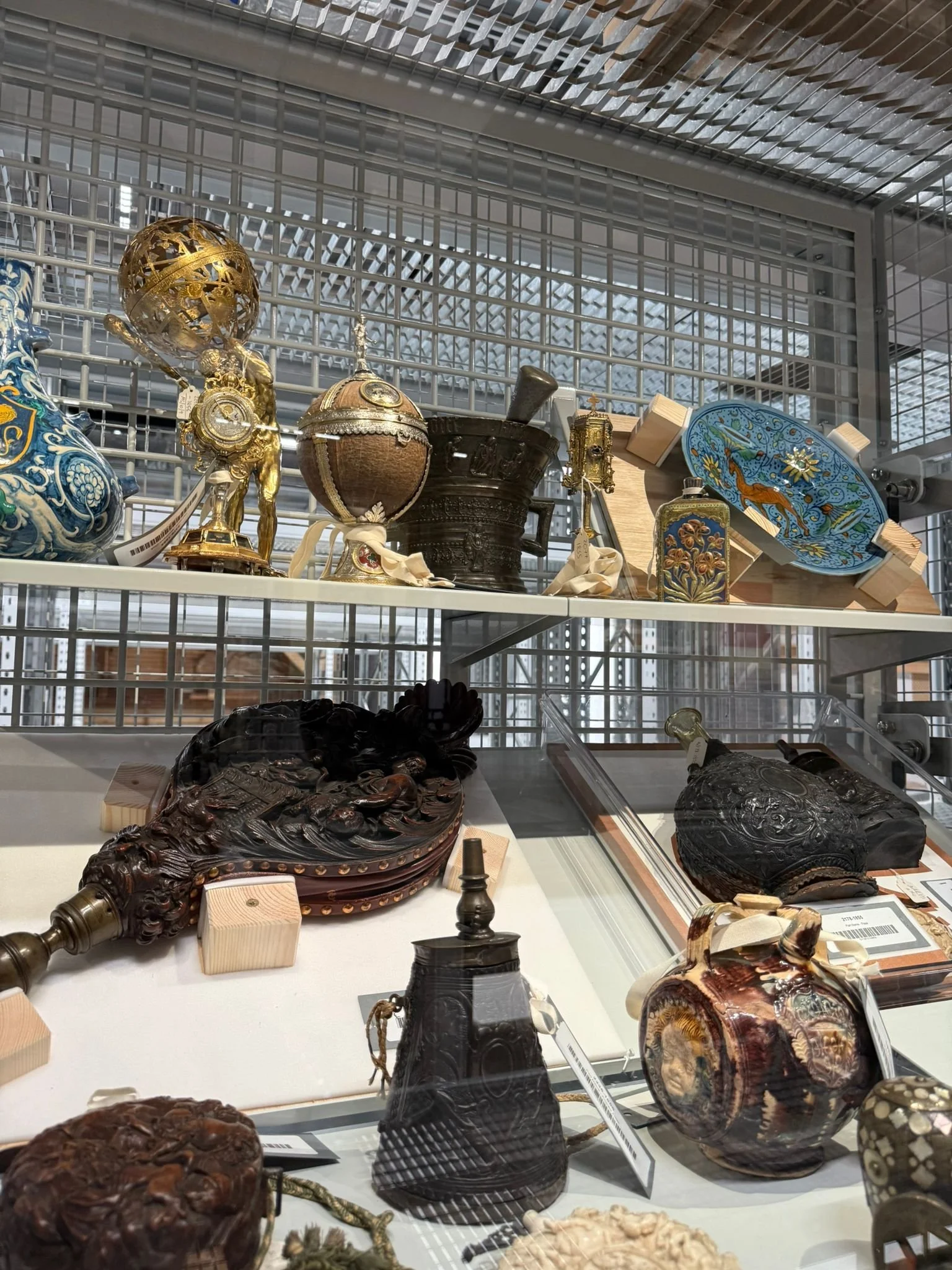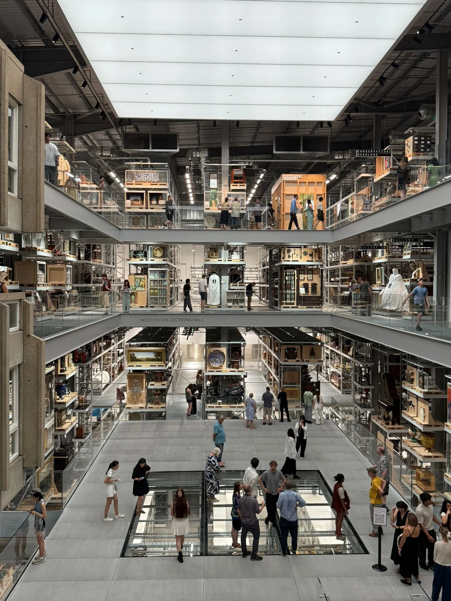 There are three floors that are accessible to the public and on the lowest floor, the floors are glass so that you can see the behind-the-scenes work that the staff carry out and objects stored below.