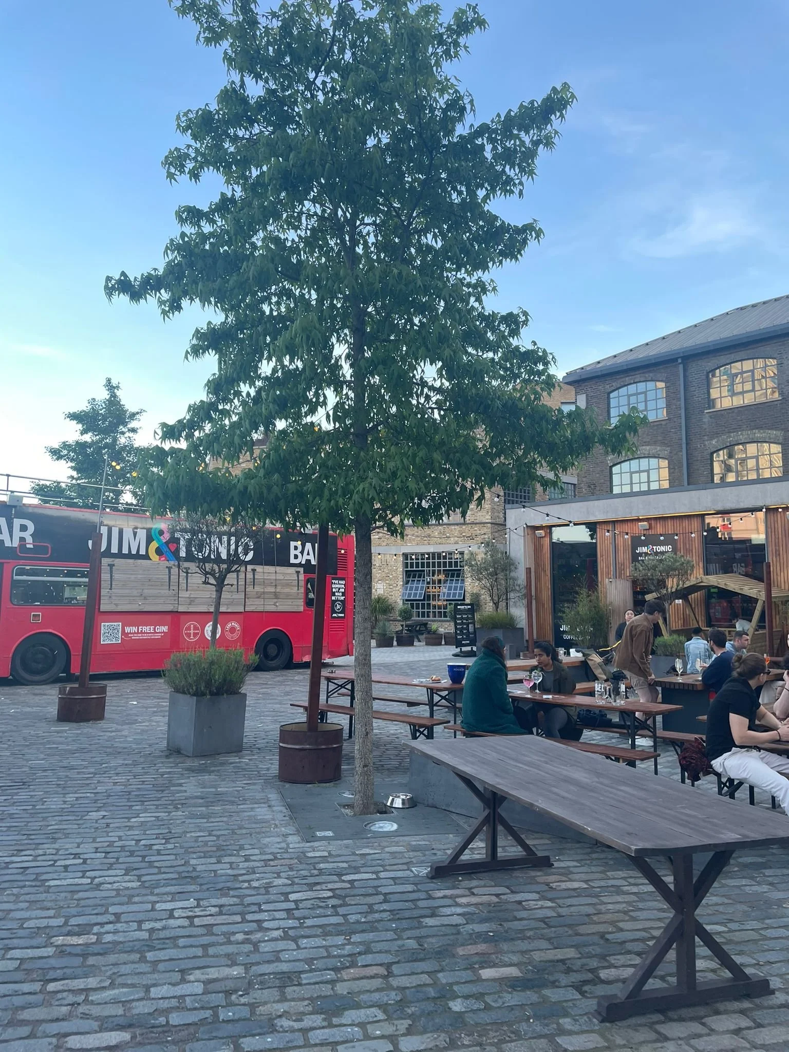 Jim & Tonic is located on Stratford High Street, with the Three Mills Wall River right by them.